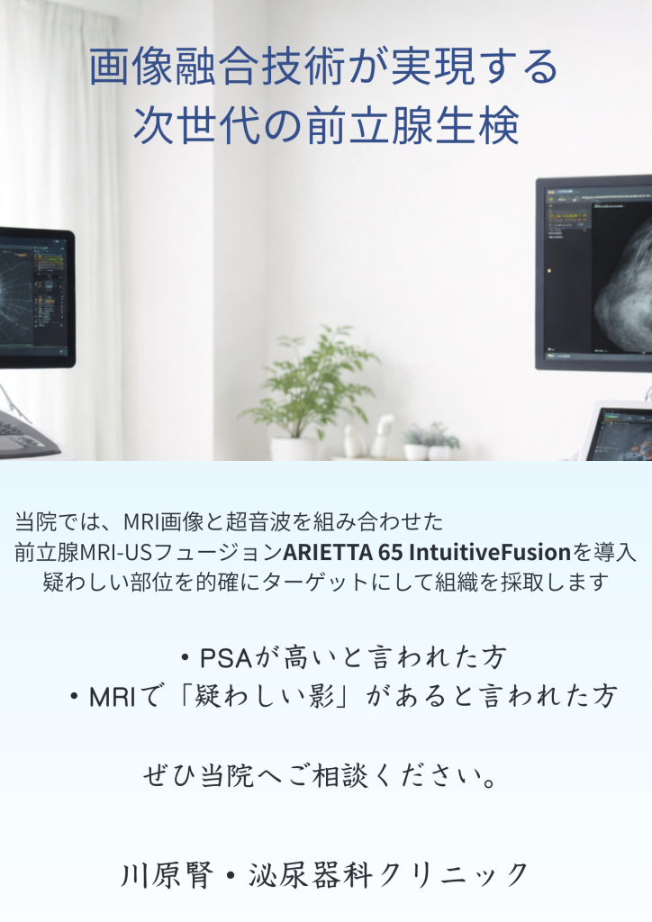 姶良・霧島地区初導入 MRI-US Fusion前立腺生検 2026 3/03 2026年3月3日 お電話でのお問い合わせ お電話でのお問い合わせ 未分類 前立腺肥大症に対する新しい低侵襲治療(WAVE)を始めます!!! 「腹膜透析という選択肢」姶良・霧島地区PDセミナー開催のお知らせ