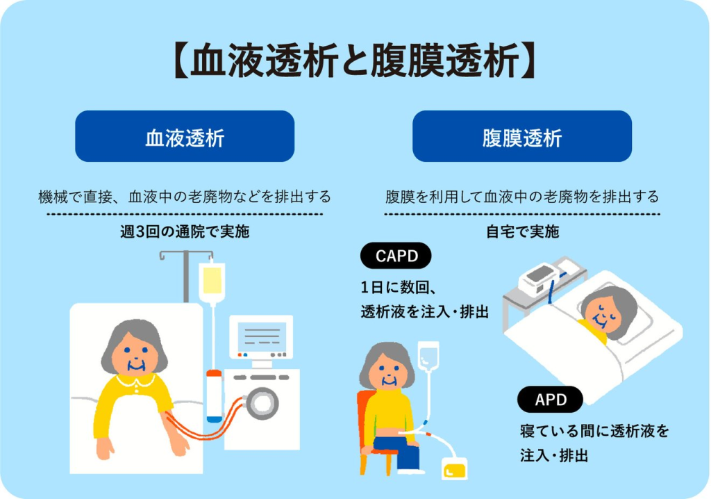 | 透析方法 | 腹膜透析 | 血液透析 | |